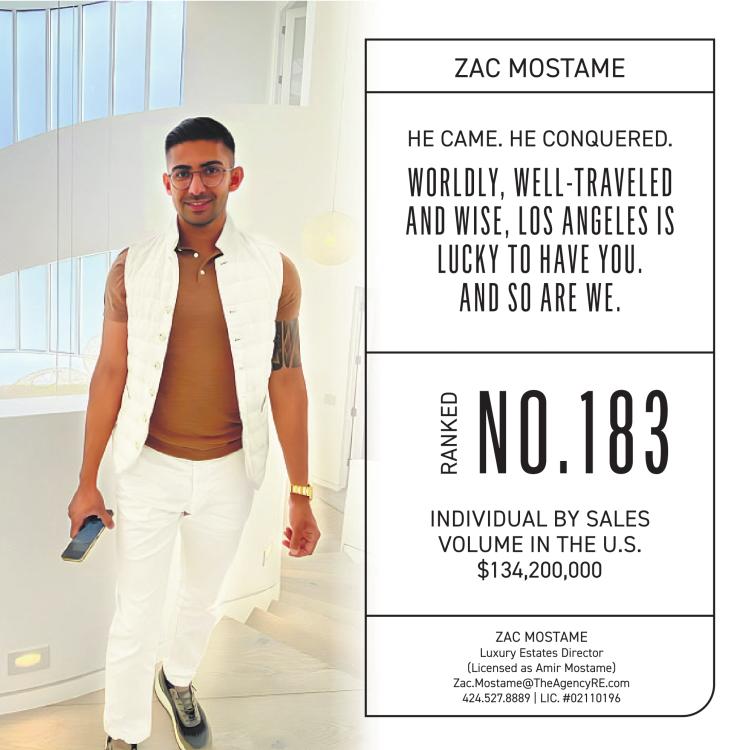 Luxury Estates Director (Licensed as Amir Mostame) Zac.Mostame@TheAgencyRE.com 424.527.8889 | LIC. #02110196