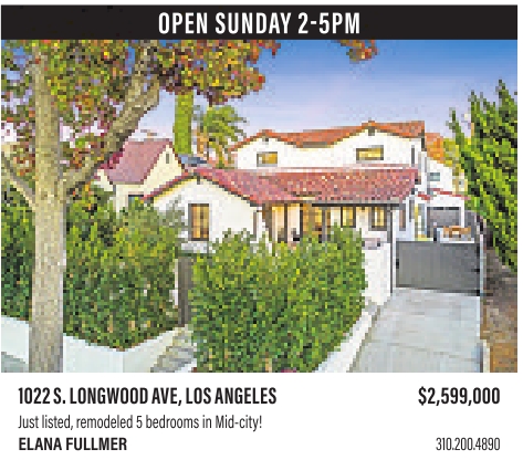 yes OPEN SUNDAY 2-5PM 1022 S. LONGWOOD AVE, LOS ANGELES $2,599,000 Just listed, remodeled 5 bedrooms in Mid-city! ELANA FULLMER 310.200.4890 See also