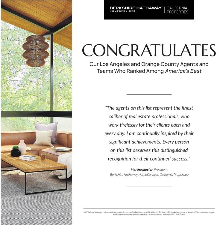©2023BerkshireHathawayHomeServicesCaliforniaPropertiesisamemberofthefranchisesystemofBHHAffiliatesLLC.BHHSandtheBHHSsymbolareregisteredservicemarksofColumbiaInsuranceCompany, aBerkshireHathawayaffiliate.TheAmerica’sBestlistisaproductofHWMedia,published6/14/23. ADVERTORIAL