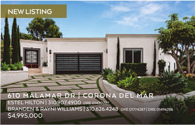 NEW LISTING 610 MALAMAR DR | CORONA DEL MAR ESTEL HILTON | 310.907.4900 DRE 01420227 BRANDEN & RAYNI WILLIAMS | 310.626.4248 DRE 01774287 | DRE 01496786 $4,995,000 See also