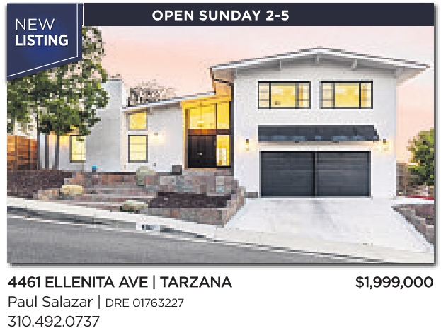 NEW LISTING OPEN SUNDAY 2-5 4461 ELLENITA AVE | TARZANA $1,999,000 Paul Salazar | DRE 01763227 310.492.0737 See also