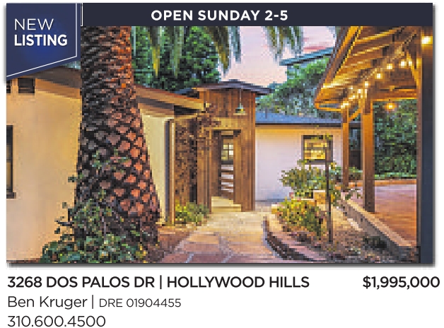 NEW LISTING OPEN SUNDAY 2-5 3268 DOS PALOS DR | HOLLYWOOD HILLS $1,995,000 Ben Kruger | DRE 01904455 310.600.4500 See also