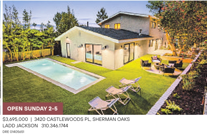 OPEN SUNDAY 2-5 $3,695,000 | 3420 CASTLEWOODS PL, SHERMAN OAKS LADD JACKSON 310.346.1744 DRE 01405651 See also