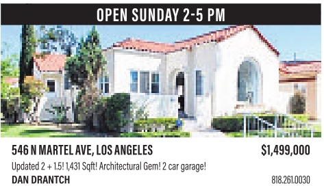 yes OPEN SUNDAY 2-5 PM 546 N MARTEL AVE, LOS ANGELES $1,499,000 Updated2 +1.5! 1,431Sqft! ArchitecturalGem! 2 cargarage! DAN DRANTCH 818.261.0030 See also