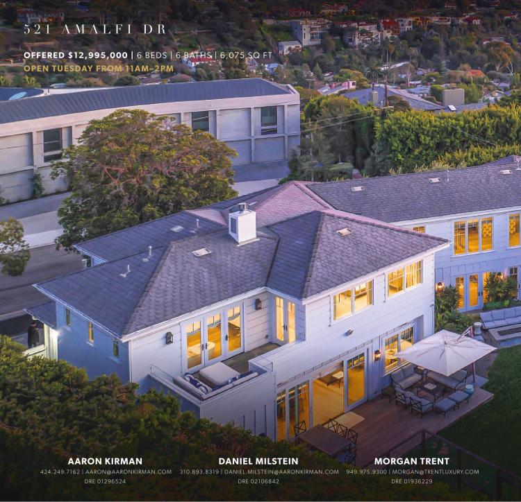 5 2 1 A M A L F I D R OFFERED $12,995,000 | 6 BEDS | 6 BATHS | 6,075 SQ FT OPEN TUESDAY FROM 11AM–2PM AARON KIRMAN 424.249.7162 | AARON@AARONKIRMAN.COM DRE 01296524 DANIEL MILSTEIN 310.893.8319 | DANIEL.MILSTEIN@AARONKIRMAN.COM DRE 02106842 MORGAN TRENT 949.975.9300 | MORGAN@TRENTLUXURY.COM DRE 01936229