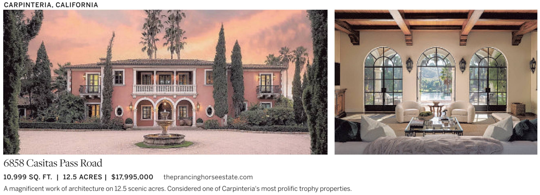 A magnificent work of architecture on 12.5 scenic acres. Considered one of Carpinteria's most prolific trophy properties.