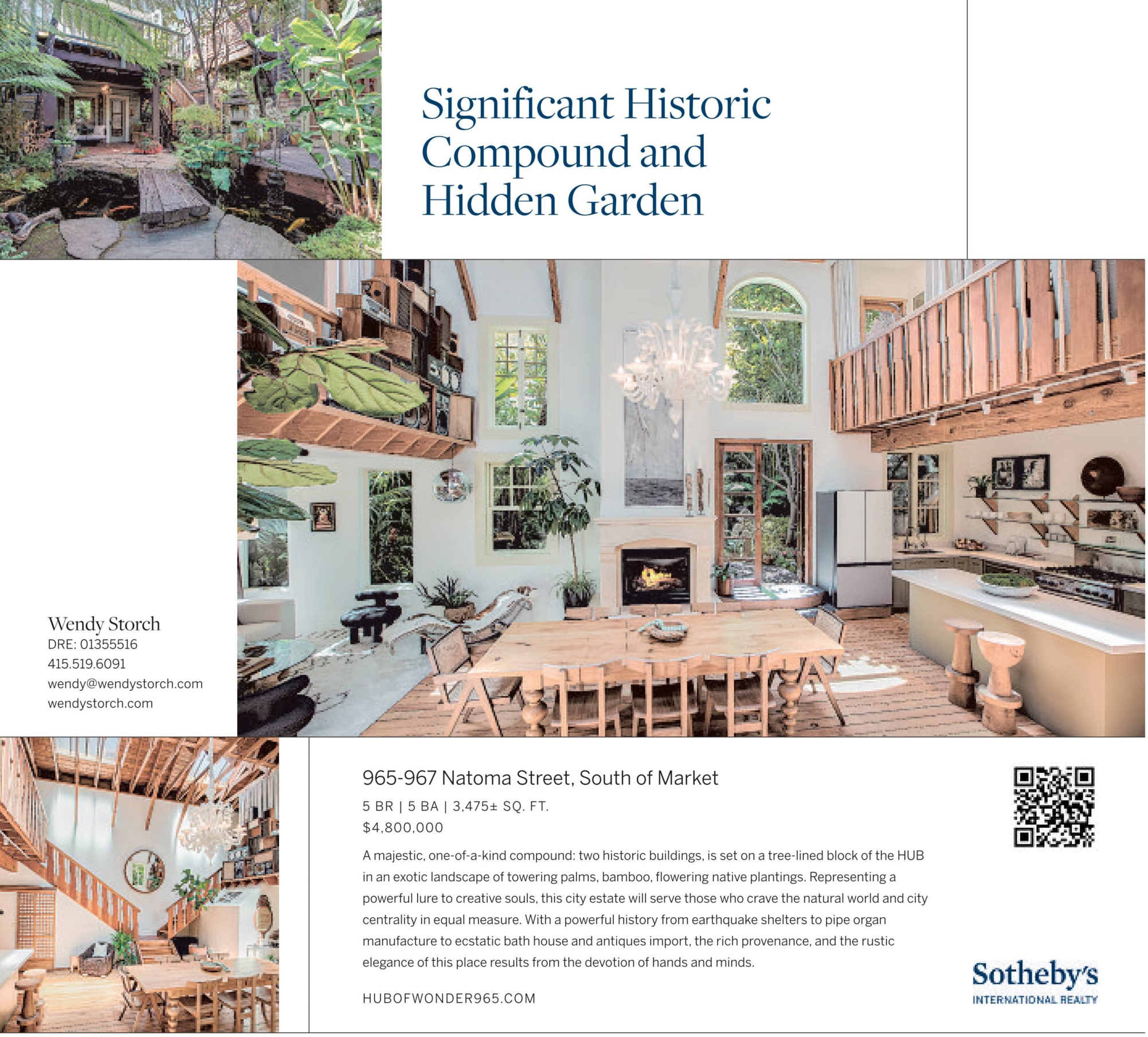 A majestic, one-of-a-kind compound: two historic buildings, is set on a tree-lined block of the HUB in an exotic landscape of towering palms, bamboo, flowering native plantings. Representing a powerful lure to creative souls, this city estate will serve those who crave the natural world and city centrality in equal measure. With a powerful history from earthquake shelters to pipe organ manufacture to ecstatic bath house and antiques import, the rich provenance, and the rustic elegance of this place results from the devotion of hands and minds.