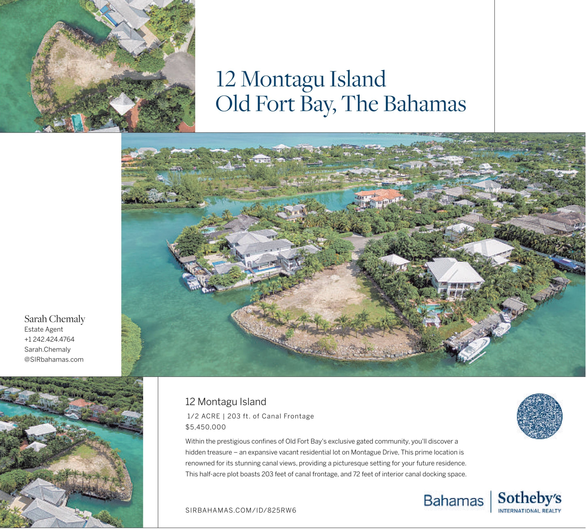 12 Montagu Island Old Fort Bay, The Bahamas George Damianos Estate Agent +1242.424.4764 Sara.Chemaly@SIRbahamas.com 12 Montagu Island 1/2 ACRE | 203 ft. of Canal Frontage $5,450,000