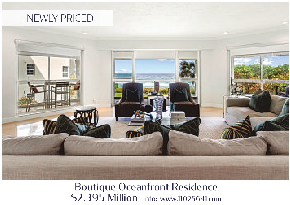 NEWLY PRICED Boutique Oceanfront Residence $2.395 Million Info: www.11025641.com See also