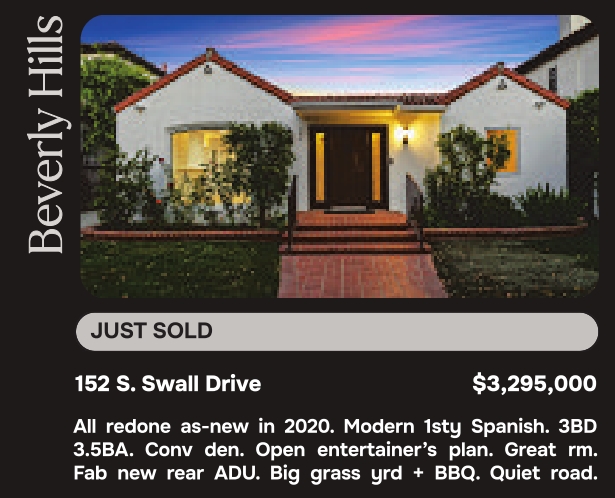All redone as-new in 2020. Modern 1sty Spanish. 3BD 3.5BA. Conv den. Open entertainer’s plan. Great rm. Fab new rear ADU. Big grass yrd + BBQ. Quiet road.