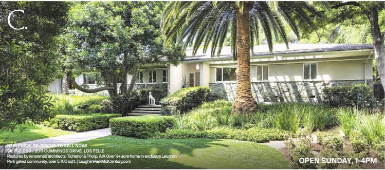 NEW PRICE, RE-PRICEDTOSELL NOW! $8,950,000 | 2011 CUMMINGS DRIVE, LOS FELIZ Restored byrenowned architects, Tichenor & Thorp, AIA Over½+ acre home in exclusive Laughlin Park gated community, over5,700 sqft. | LaughlinParkMidCentury.com OPEN SUNDAY, 1-4PM