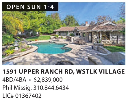 1591 UPPER RANCH RD,WSTLK VILLAGE 4BD/4BA • $2,839,000 Phil Missig,310.844.6434 LIC# 01367402