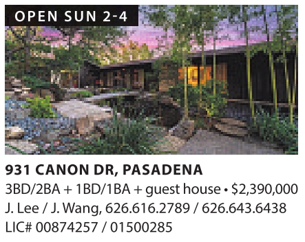 931 CANON DR, PASADENA 3BD/2BA + 1BD/1BA + guest house •$2,390,000 J. Lee/ J.Wang, 626.616.2789 / 626.643.6438 LIC# 00874257 / 01500285