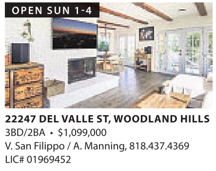 22247 DEL VALLE ST,WOODLAND HILLS 3BD/2BA • $1,099,000 V. San Filippo /A.Manning,818.437.4369 LIC# 01969452