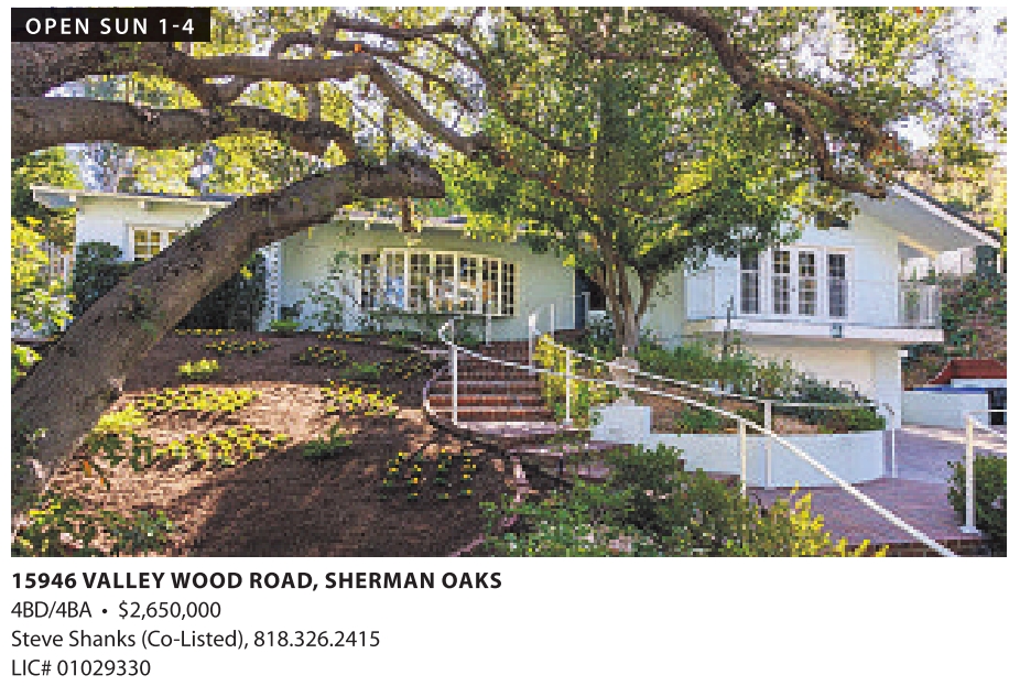 15946 VALLEYWOOD ROAD, SHERMAN OAKS 4BD/4BA • $2,650,000 SteveShanks (Co-Listed), 818.326.2415 LIC#01029330