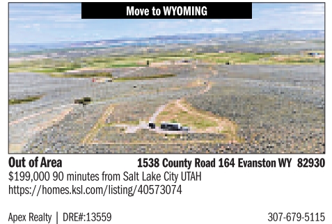 Out of Area 1538 County Road 164 EvanstonWY 82930 $199,000 90 minutes from Salt Lake City UTAH https://homes.ksl.com/listing/40573074