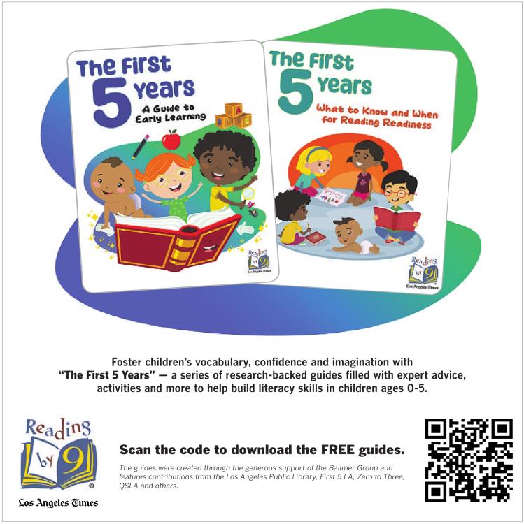 Foster children’s vocabulary, confidence and imagination with “The First 5 Years” — a series of research-backed guides filled with expert advice, activities and more to help build literacy skills in children ages 0-5. Scan the code to download the FREE guides. The guides were created through the generous support of the Ballmer Group and features contributions from the Los Angeles Public Library, First 5 LA, Zero to Three, QSLA and others.