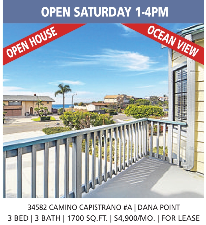 34582 CAMINO CAPISTRANO #A | DANA POINT 3 BED | 3 BATH | 1700 SQ.FT. | $4,900/MO. | FOR LEASE