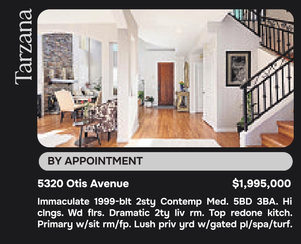 Immaculate 1999-blt 2sty Contemp Med. 5BD 3BA. Hi clngs. Wd flrs. Dramatic 2ty liv rm. Top redone kitch. Primary w/sit rm/fp. Lush priv yrd w/gated pl/spa/turf.