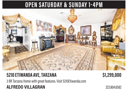 yes OPEN SATURDAY & SUNDAY 1-4PM 5210ETIWANDAAVE,TARZANA $1,299,000 3BRTarzana Home with greatfeatures. Visit5210Etiwanda.com ALFREDOVILLAGRAN 323.804.6582 See also