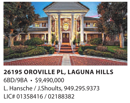 26195 OROVILLE PL, LAGUNA HILLS 6BD/9BA • $9,490,000 L. Hansche / J.Shoults, 949.295.9373 LIC# 01358416 / 02188382