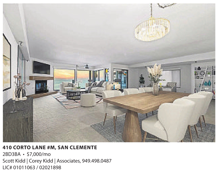 410 CORTO LANE #M, SAN CLEMENTE 2BD3BA • $7,000/mo Scott Kidd | Corey Kidd | Associates,949.498.0487 LIC# 01011063 / 02021898