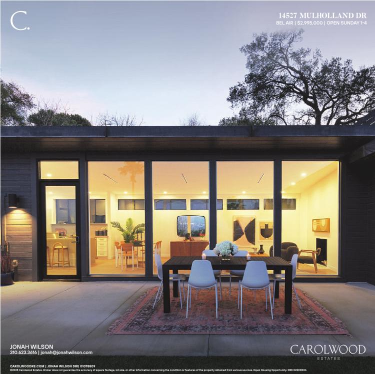 14527 MULHOLLAND DR BEL AIR | $2,995,000 | OPEN SUNDAY 1-4 JONAH WILSON 310.623.3616 | jonah@jonahwilson.com CAROLWOODRE.COM |JONAH WILSON DRE 01078809 ©2025 Carolwood Estates. Broker does not guarantee the accuracyofsquare footage,lot size, orother information concerningthe condition or features of theproperty obtained from various sources. Equal Housing Opportunity. DRE 02200006
