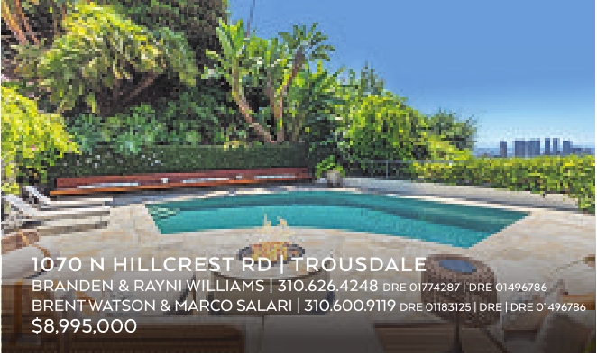 BRANDEN &RAYNI WILLIAMS | 310.626.4248 DRE01774287 | DRE01496786 BRENTWATSON &MARCO SALARI | 310.600.9119 DRE 01183125 | DRE | DRE01496786 $8,995,000