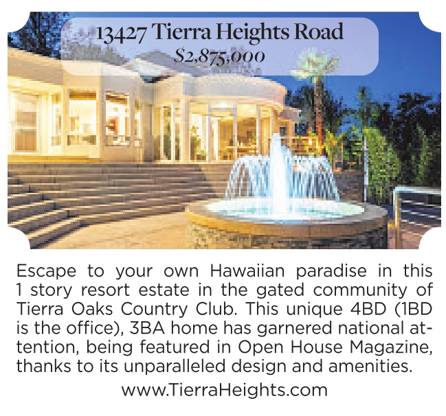 Escape to your own Hawaiian paradise in this 1 story resort estate in the gated community of Tierra Oaks Country Club. This unique 4BD (1BD is the office), 3BA home has garnered national attention, being featured in Open House Magazine, thanks to its unparalleled design and amenities.
