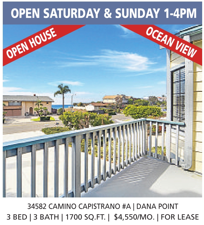 34582 CAMINO CAPISTRANO #A | DANA POINT 3 BED | 3 BATH | 1700 SQ.FT. | $4,550/MO. | FOR LEASE
