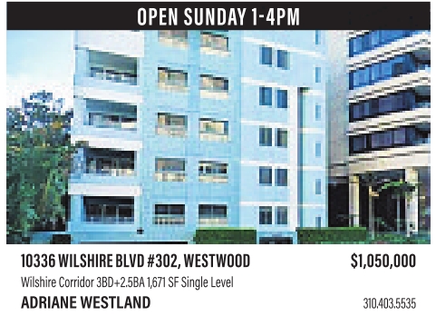 yes OPEN SUNDAY 1-4PM 10336WILSHIREBLVD#302,WESTWOOD $1,050,000 WilshireCorridor3BD+2.5BA 1,671SFSingleLevel ADRIANEWESTLAND 310.403.5535 See also