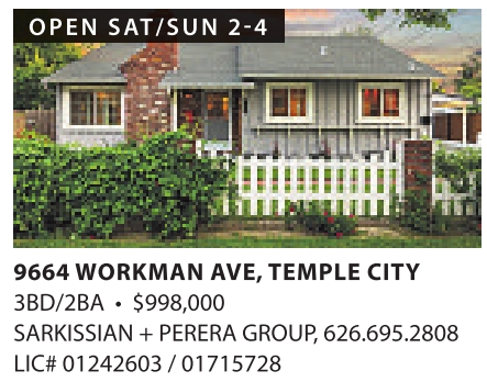 9664 WORKMAN AVE, TEMPLE CITY 3BD/2BA • $998,000 SARKISSIAN +PERERA GROUP,626.695.2808 LIC# 01242603 / 01715728