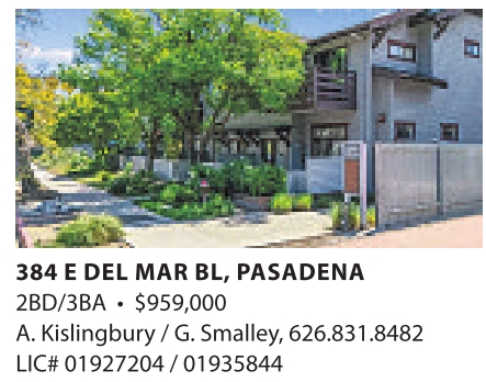384 E DEL MAR BL, PASADENA 2BD/3BA • $959,000 A. Kislingbury/ G. Smalley, 626.831.8482 LIC# 01927204 / 01935844