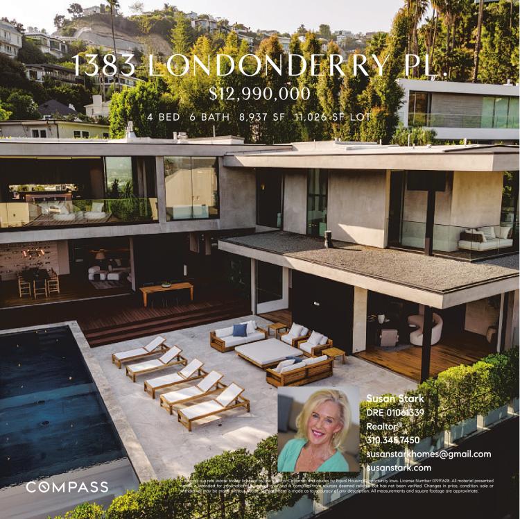 1 3 8 3 L ON D ON D E R RY P L . $12,990,000 4 BED 6 BAT H 8,937 SF 11,026 SF LOT Susan Stark DRE 01061339 Realtor ® 310.345.7450 susanstarkhomes@gmail.com susanstark.com Compass is areal estate broker licensed bythe State ofCalifornia and abides byEqual Housing Opportunity laws. License Number 01991628. All material presented herein is intended for informational purposes only and is compiled from sources deemed reliable but has not been verified. Changes in price, condition, sale or withdrawal may bemade without notice. No statement ismade astoaccuracy ofany description. All measurements and square footage are approximate.