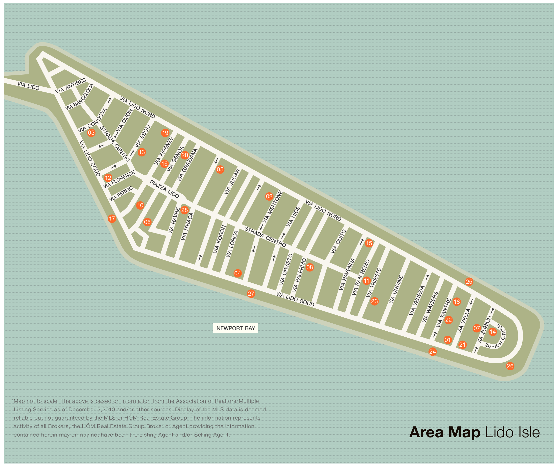 03 12 17 13 10 *Map not to scale. The above is based on information from the Association of Realtors/Multiple Listing Service as of December 3,2010 and/or other sources. Display of the MLS data is deemed reliable but not guaranteed by the MLS or HÔM Real Estate Group. The information represents activity of all Brokers, the HÔM Real Estate Group Broker or Agent providing the information contained herein may or may not have been the Listing Agent and/or Selling Agent. 06 19 16 20 28 05 04 27 02 08 15 11 23 24 22 01 18 21 25 07 Area Map Lido Isle 14 26