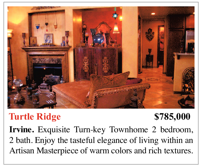 Turtle Ridge $785,000 Irvine. Exquisite Turn-key Townhome 2 bedroom, 2 bath. Enjoy the tasteful elegance of living within an Artisan Masterpiece of warm colors and rich textures.
