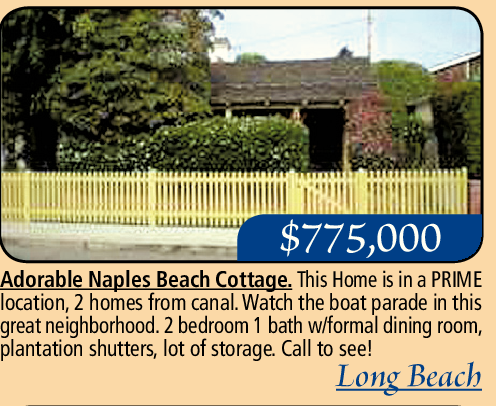 Adorable Naples Beach Cottage. This Home is in a PRIME location, 2 homes from canal. Watch the boat parade in this great neighborhood. 2 bedroom 1 bath w/formal dining room, plantation shutters, lot of storage. Call to see!