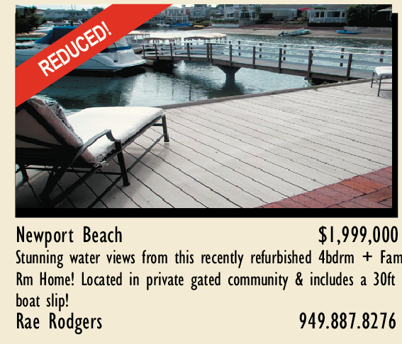 Newport Beach $1,999,000 Stunning water views from this recently refurbished 4bdrm + Fam Rm Home! Located in private gated community & includes a 30ft boat slip! Rae Rodgers 949.887.8276