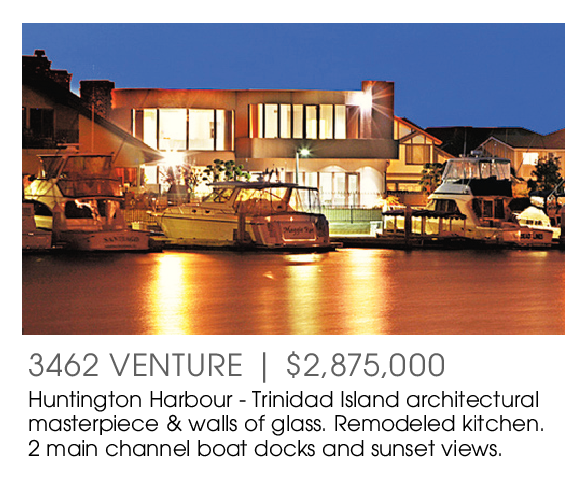 3462 VENTURE | $2,875,000 Huntington Harbour - Trinidad Island architectural masterpiece & walls of glass. Remodeled kitchen. 2 main channel boat docks and sunset views.