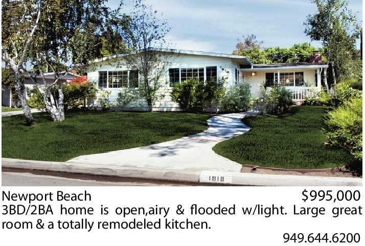 Newport Beach $995,000 3BD/2BA home is open,airy & flooded w/light. Large great room & a totally remodeled kitchen.