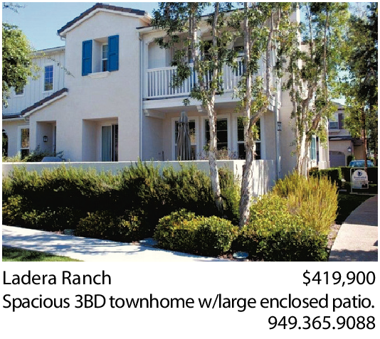 Ladera Ranch $419,900 Spacious 3BD townhome w/large enclosed patio.