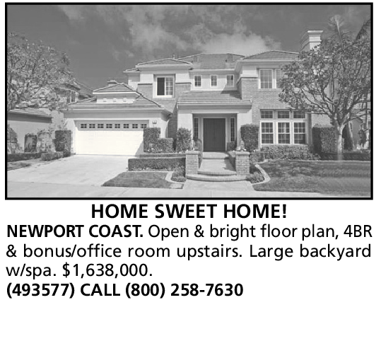 NEWPORT COAST. Open & bright floor plan, 4BR & bonus/office room upstairs. Large backyard w/spa. $1,638,000. (493577) CALL (800) 258-7630