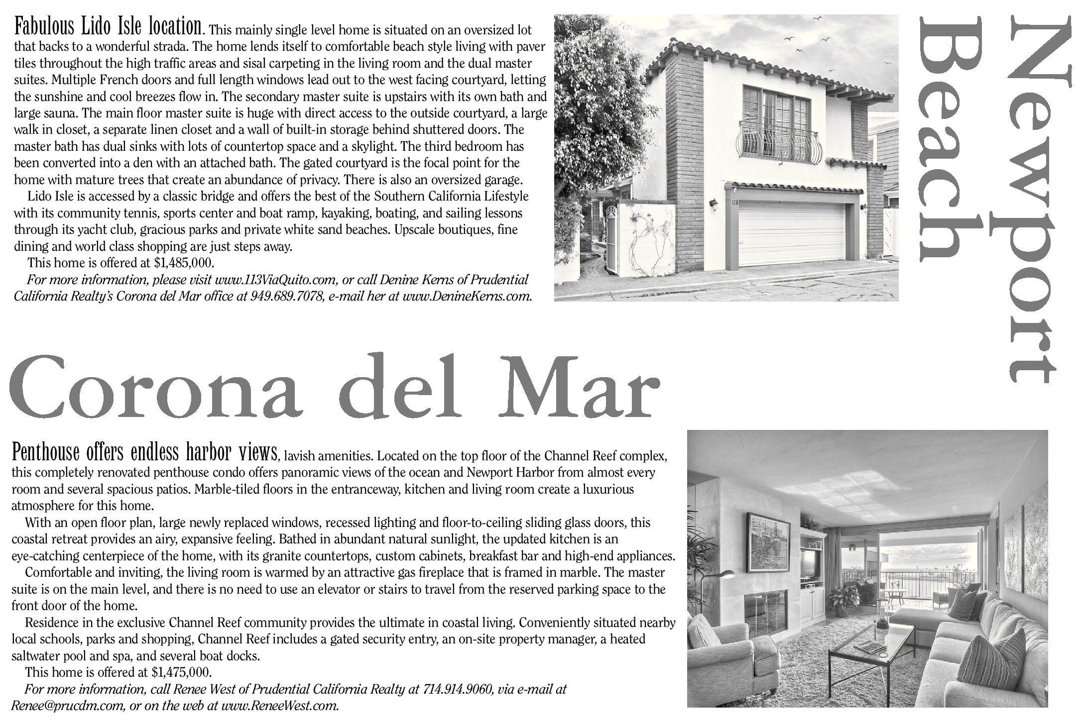 This home is offered at $1,485,000. For more information, please visit www.113ViaQuito.com, or call Denine Kerns of Prudential California Realty’s Corona del Mar office at 949.689.7078, e-mail her at www.DenineKerns.com.