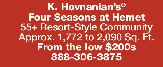K. Hovnanian’s ® Four Seasons at Hemet 55+ Resort-Style Community Approx. 1,772 to 2,090 Sq. Ft.