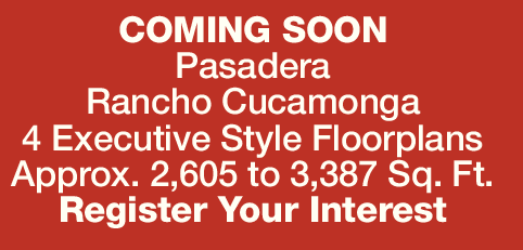 COMING SOON Pasadera Rancho Cucamonga 4 Executive Style Floorplans Approx. 2,605 to 3,387 Sq. Ft.