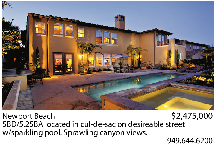Newport Beach $2,475,000 5BD/5.25BA located in cul-de-sac on desireable street w/sparkling pool. Sprawling canyon views.