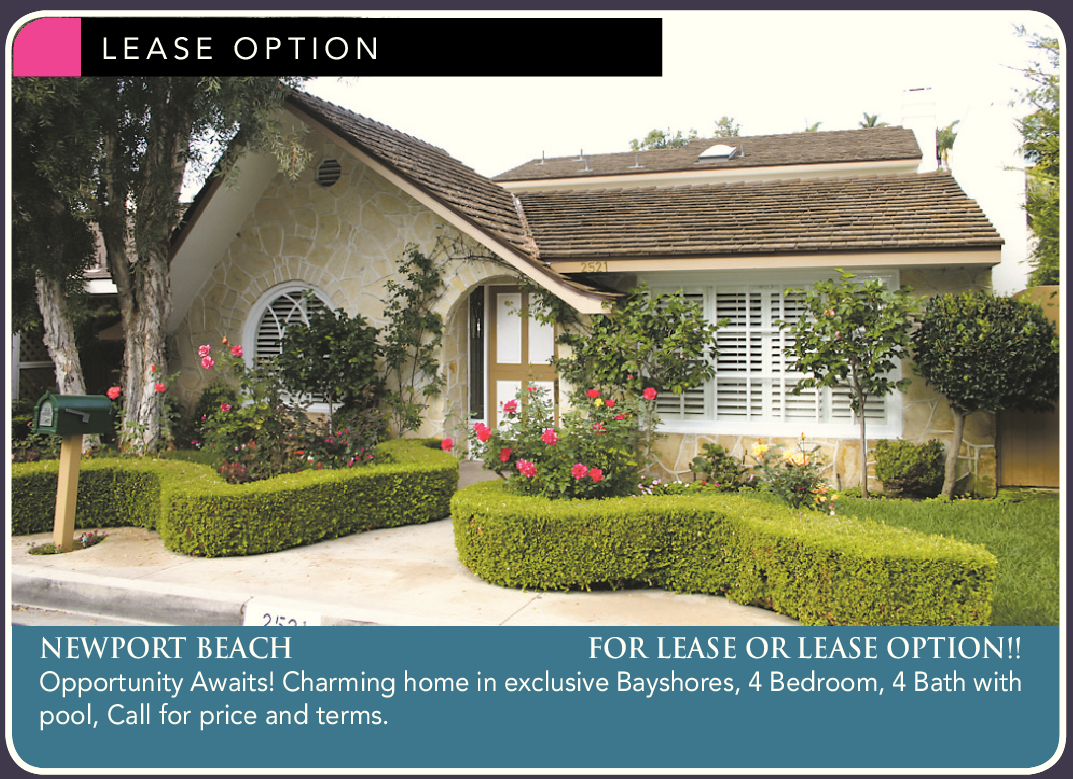 NEWPORT BEACH FOR LEASE OR LEASE OPTION!! Opportunity Awaits! Charming home in exclusive Bayshores, 4 Bedroom, 4 Bath with pool, Call for price and terms.