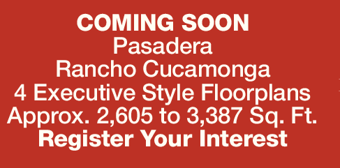 COMING SOON Pasadera Rancho Cucamonga 4 Executive Style Floorplans Approx. 2,605 to 3,387 Sq. Ft.
