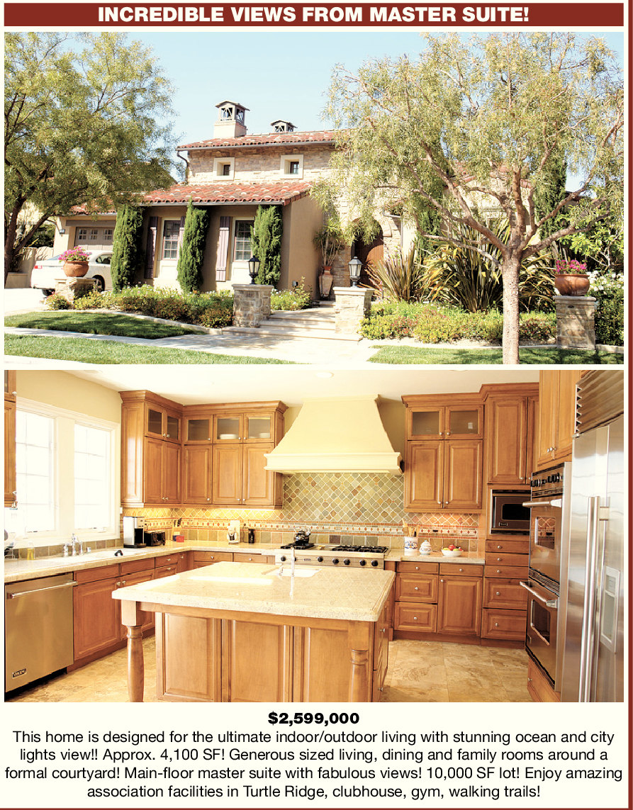 INCREDIBLE VIEWS FROM MASTER SUITE! $2,599,000 This home is designed for the ultimate indoor/outdoor living with stunning ocean and city lights view!! Approx. 4,100 SF! Generous sized living, dining and family rooms around a formal courtyard! Main-floor master suite with fabulous views! 10,000 SF lot! Enjoy amazing association facilities in Turtle Ridge, clubhouse, gym, walking trails!