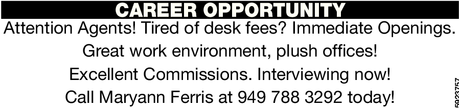 Attention Agents! Tired of desk fees? Immediate Openings.